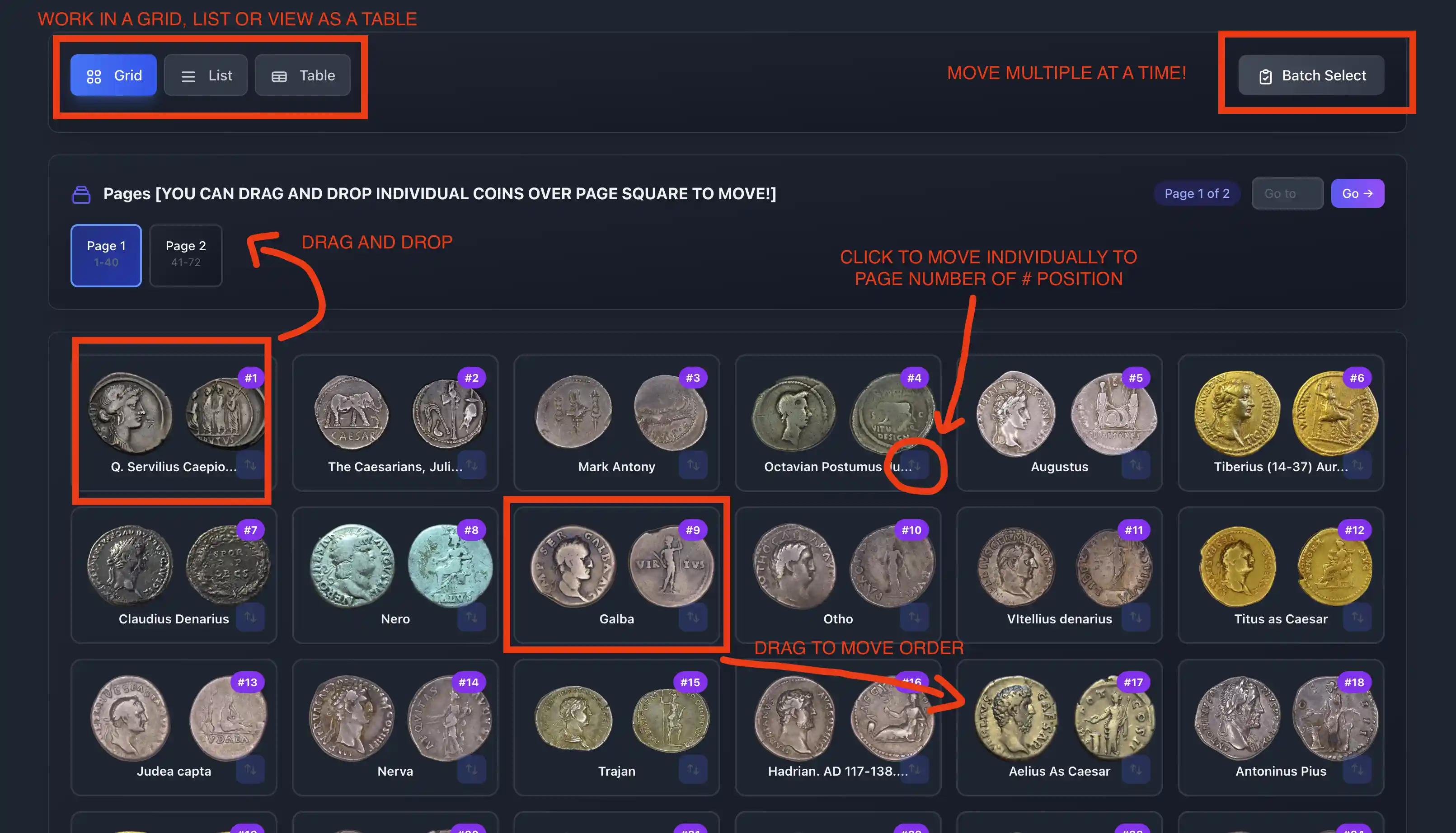 A complete overhaul to how you order coins, with advanced features for large collections!