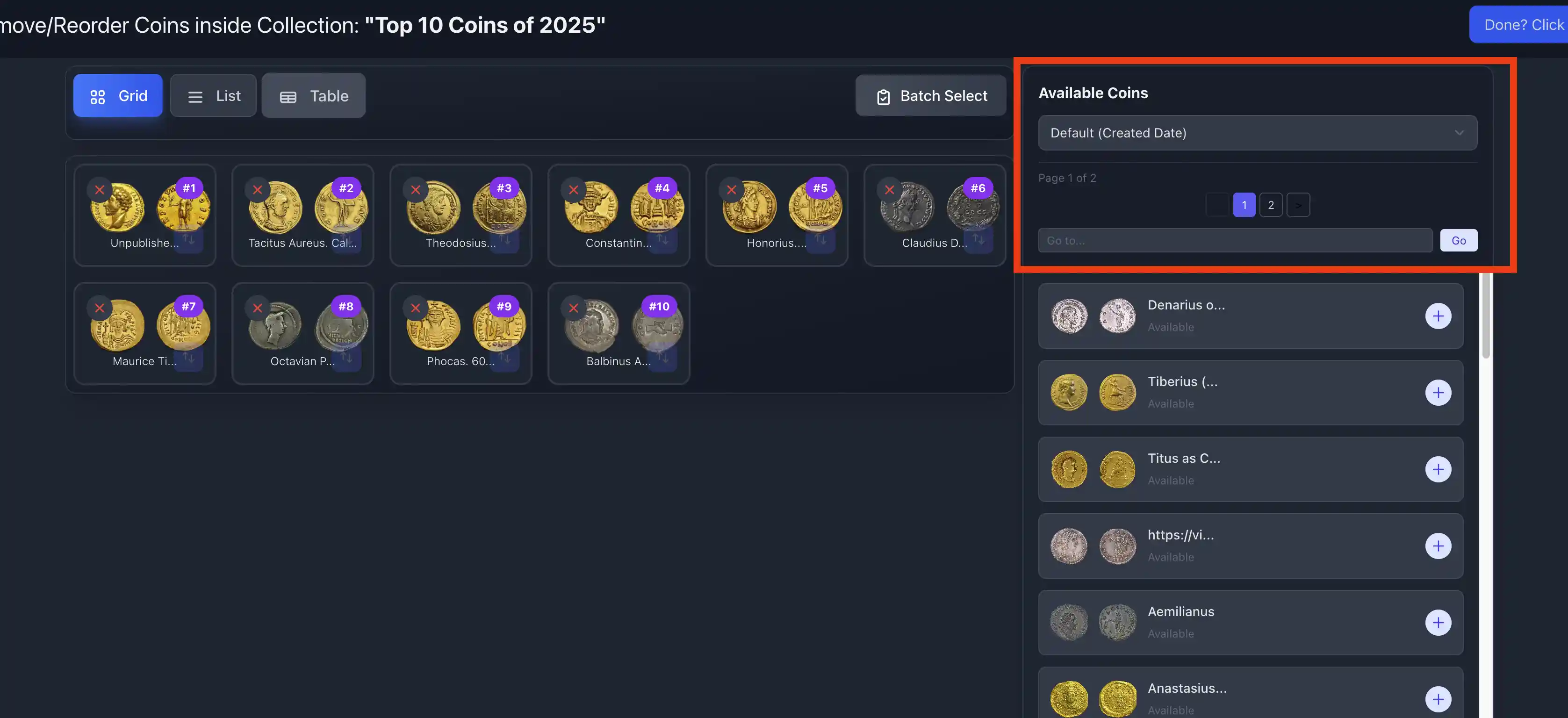 Add/Edit Coin UI within a Collection now has a Pagination and Ordering options to help those with massive collections