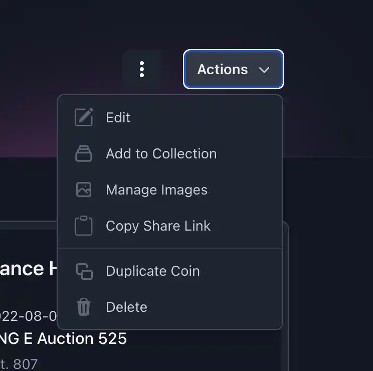 On View Coin, there is a new Action called "Add Coin to Collection" which shows a popup to select a Coin
