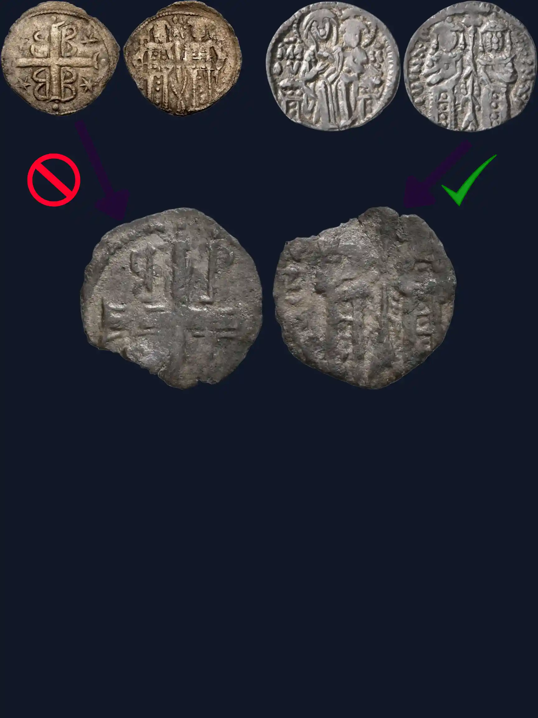 Due to these similarities, the coin I acquired can be identified as belonging to the joint reign of John V Palaiologos and John VI Kantakouzenos from 1347 - 1353 AD. The obverse, though matching closest to a most likely earlier type, is still completely different, and the reverse confirms its attribution here.