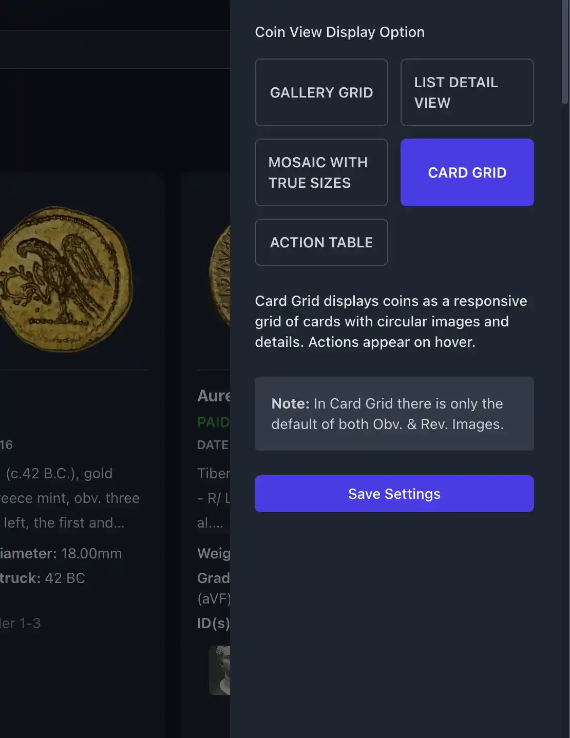 Automatically figures out if the coin is in your collection, for sale, or sold, the currency involved, and stores the price, buyers premium, etc