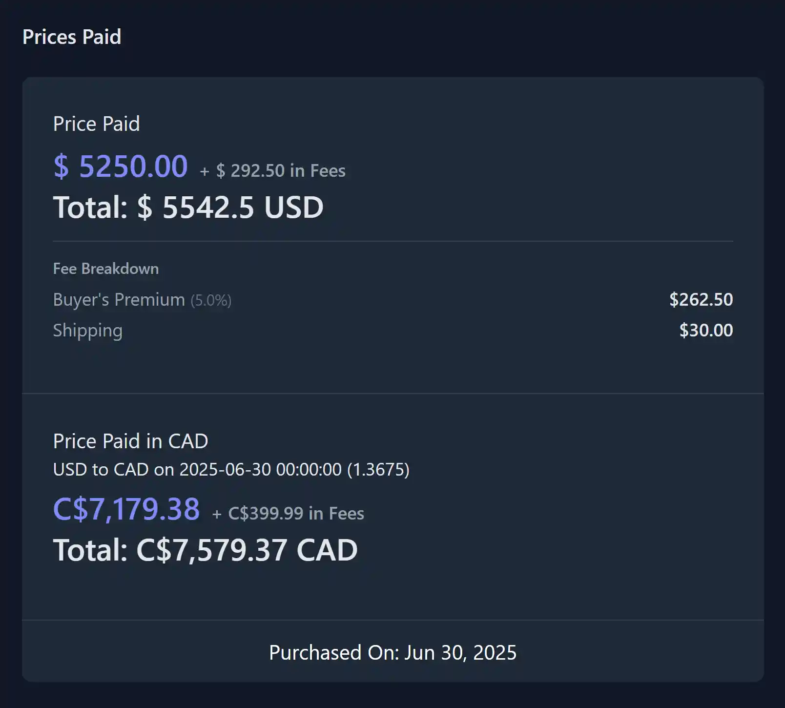 Buyers Premium (as a % of price purchased OR $ amount)