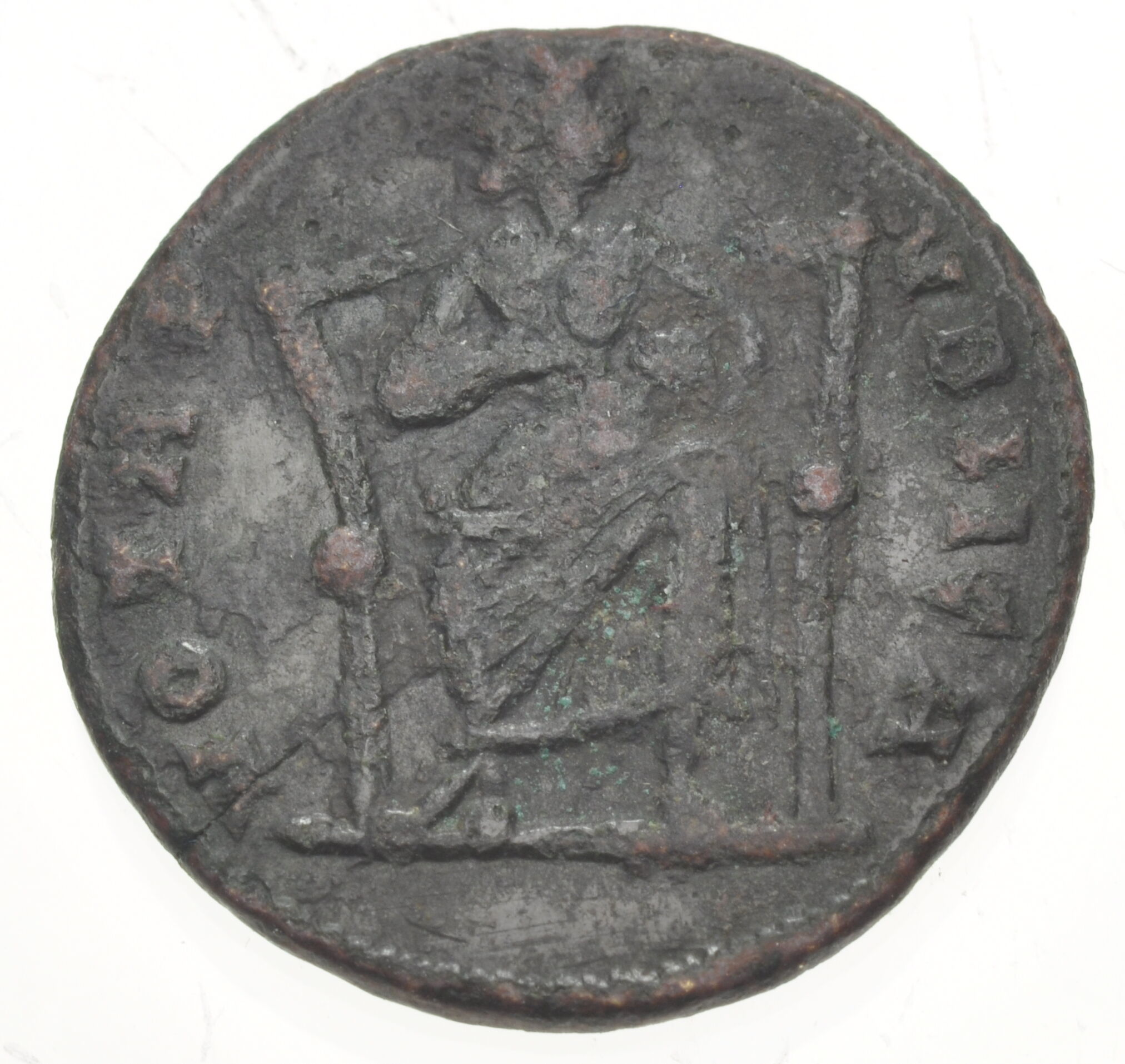 Festival of Isis. Mid-late 4th century AD. Æ (18mm, 2.43 g, 12h). Rome mint. ISIS F-ARIA, draped bust of Isis right, wearing basileion / VOTA P-VBLICA, Isis seated facing, head right, suckling Horus-Harpocrates. Bricault & Mondello I132; Tesorillo 12/11; Alföldi, Festival 324, pl. IX, 37 and pl. XIII, 18; Vagi 3390. Extremely rare.