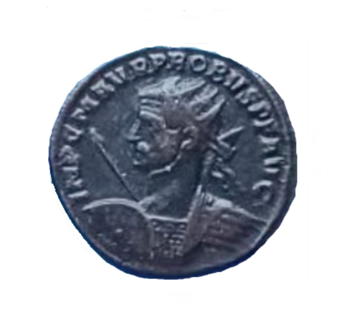 Bust type: F8 = radiate, cuirassed bust left, holding spear and shield, seen from rear