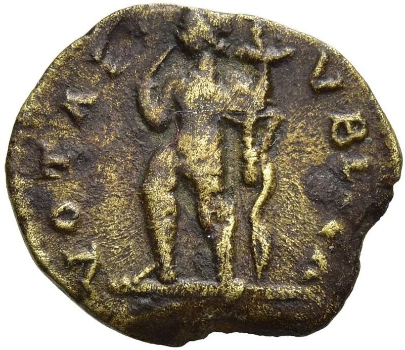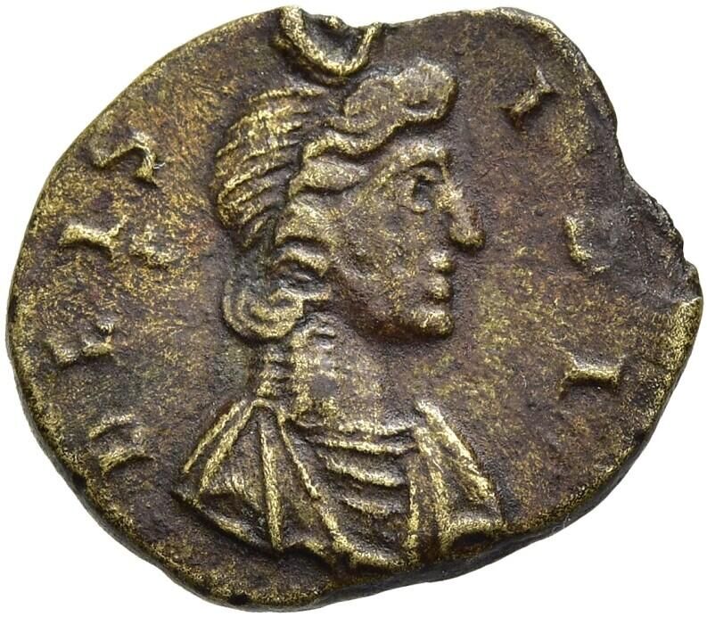 Festival of Isis. Mid-late 4th century AD. Æ (15mm, 1.16 g, 6h). Rome mint. DE IS-IDI, draped bust of Isis right, wearing basileion / VOTA P-VBLICA, Harpocrates standing left, holding finger on right hand to his mouth, cradling cornucopia with left arm. Bricault & Mondello 218 (this token cited); Tesorillo 29/15, 239 (this token); Alföldi, Festival -; Vagi -.