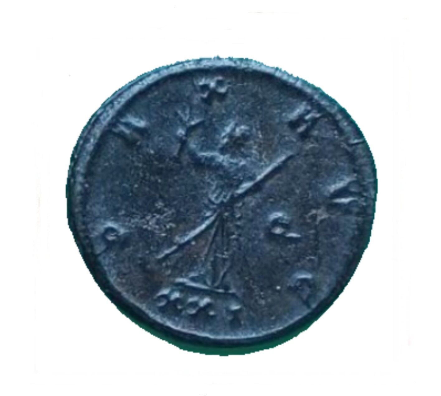 Bust type: E2 = radiate, cuirassed, helmeted bust left, holding spear and shield; seen from rear