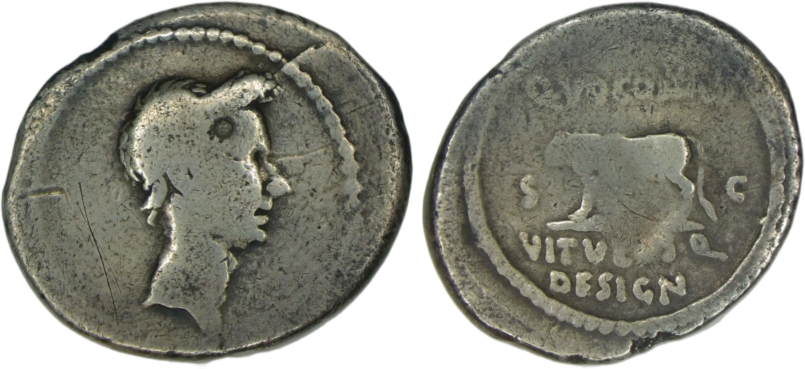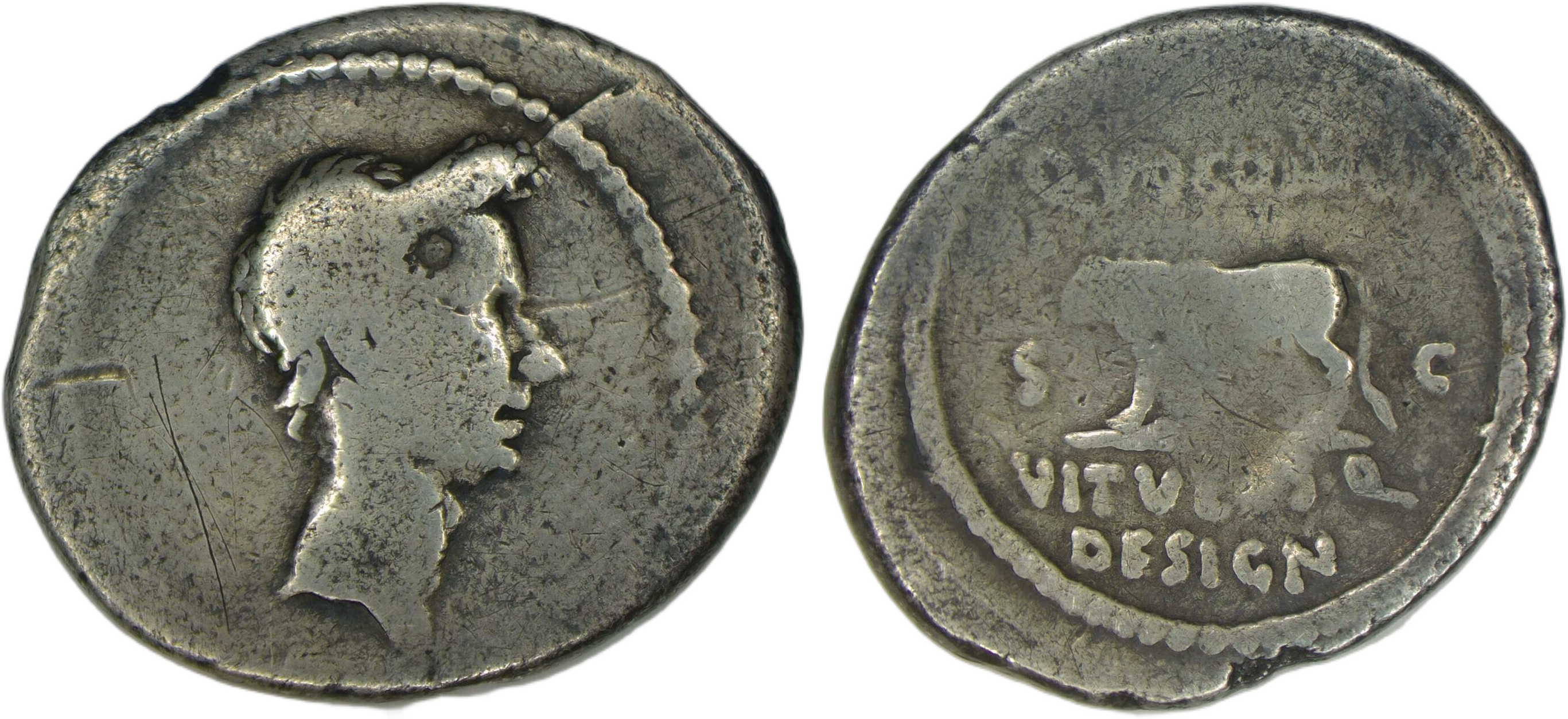 | Obverse | portrait of Julius Caesar, postumus (4 years later) |