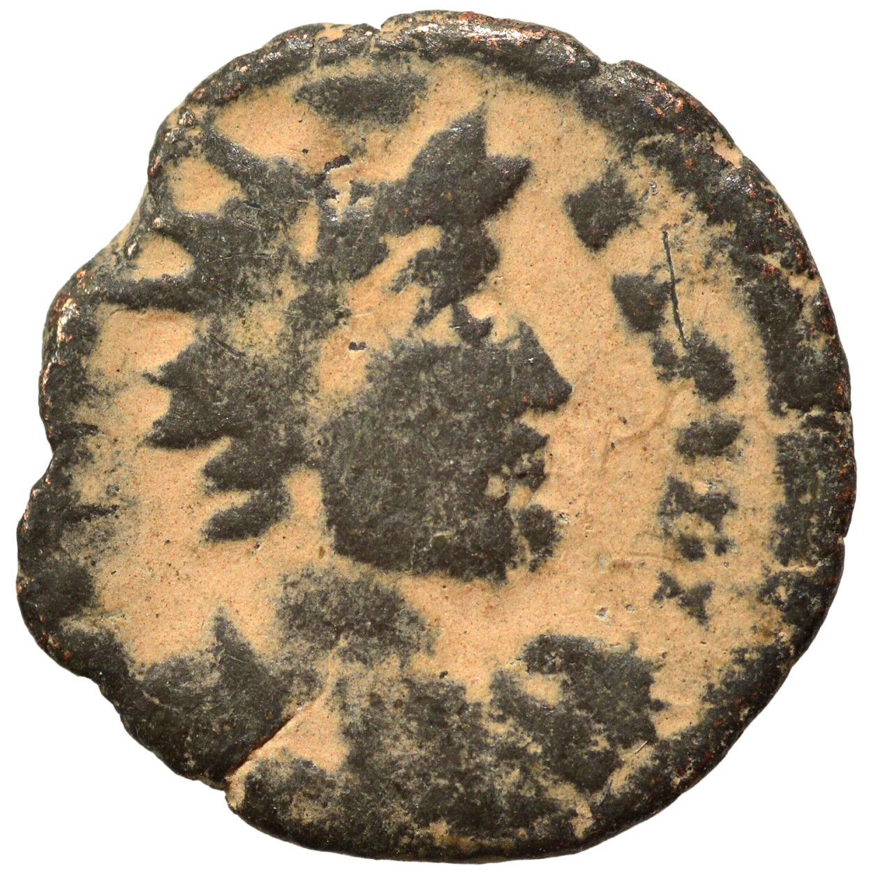 Festival of Isis. Mid-late 4th century AD. Æ (13mm, 1.08 g, 12h). Rome mint. DE[O SA]-RAPIDI, radiate and draped bearded bust of Serapis right, wearing modius / VOTA PVBLICA, Nilus reclining left, holding ship in right hand, reed in left, and leaning with his left arm on an overturned urn, from which water flows. Bricault & Mondello 168, S117.1 = Tesorillo 31/5, 241 (same dies) and Bricault & Mondello 168, S117.4 = Tesorillo 31/4, 226 corr. (obv. legend; same dies); Alföldi, Festival 194 var. (obv. legend); Vagi 3373. Very rare.